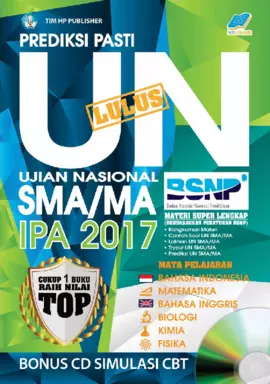 Sinopsis Singkat Buku (Untuk Cover Belakang Buku): Buku ini merupakan buku penunjang yang dirancang untuk membantu siswa dalam mempersiapkan Ujian Nasional (UN) mata pelajaran IPA pada tahun 2017. Buku ini mengandung prediksi soal-soal yang kemungkinan akan muncul dalam ujian, sehingga dapat menjadi referensi yang berguna bagi siswa dalam memperkuat pemahaman dan kemampuan menghadapi ujian. Buku ini ditulis oleh Tim HP Publisher, yang berkomitmen untuk memberikan materi yang relevan dan praktis bagi para pelajar. Dengan struktur yang jelas dan berbagai contoh soal yang disertakan, buku ini diharapkan dapat menjadi panduan yang efektif dalam mempersiapkan UN secara lebih efisien dan terarah.