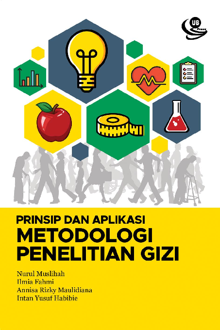 Gizi merupakan suatu proses yang integratif dan kompleks Permasalahan kajian penelitian bidang gizi sangat kompleks dalam penyelesaian status gizi status kesehatan dan penyakit Hal ini karena adanya interaksi antara faktor genetik dan lingkungan baik diet perilaku makan aspek budaya aktivitas fisik dan olahraga Penulisan metodologi penelitian menjadi hal yang sangat mendasar agar dapat merancang penelitian yang mampu menjawab pertanyaan yang dirumuskan dan hasil kajian atau temuan menjadi valid dan akurat sebagai bagian dari bukti ilmiah evidence based Ketepatan dalam menetapkan rancangan penelitian pemilihan variabel dan indikator yang tepat dengan instrumen atau alat pengukuran yang akurat dan valid menjadi hal penting tentunya ditunjang dengan kemampuan analisis dan interpretasi data sebagai pelaksana penelitian Buku ajar ini terdiri dari 9 bab yaitu bab 1 mengenai uraian konsep metode ilmiah dan perbedaan pengetahuan dan ilmu pengetahuan serta sifat dan kesalahan yang sering dilakukan oleh peneliti Bab 2 memaparkan tentang prinsip dari jenis dan rancangan penelitian gizi Bab 3 menjelaskan tentang perbedaan konsep variabel dan jenis serta aplikasi dalam mengukur paparan dan luaran dalam penelitian gizi Pada bab 4 diuraikan terkait jenis kesalahan dan bias pada penelitian dan cara meminimalkan kesalahan dan bias serta reliabilitas dan validitas pada penelitian kuantitatif maupun kualitatif Bab 5 sampai 7 menjelaskan terkait prinsip dan metode pengukuran dan peningkatan variabilitas dan reliabilitas pada pengukuran antropometri di bab 5 prinsip dan metode pengukuran antropometri bab 6 prinsip dan metode pengukuran dietetik atau asupan makan dan bab 7 pengukuran biomaker dan perilaku gizi Pada bab 8 penulis menjelaskan jenis dan prinsip pengujian hipotesis Bab terakhir dari buku ajar ini yaitu bab 9 menguraikan terkait penetapan populasi sampel kriteria inklusi dan eksklusi serta prinsip perhitungan sample dan teknik sampling