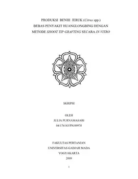 Produksi Benih Jeruk (Citrus Spp.) Bebas Penyakit Huanglongbing Dengan Metode Shoot Tip Grafting Secara In Vitro Julia Purnamasari Fakultas Pertanian UGM Konten Lokal Konten Lokal 31241