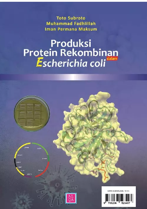 Umumnya keberadaan protein fungsional di alam ditemukan dalam jumlah sedikit sehingga diperlukan bahan baku yang banyak untuk mengisolasinya Produksi protein rekombinan merupakan cara alternatif untuk mendapatkan protein fungsional dengan sifat sifat dan dalam jumlah sesuai dengan yang diinginkan secara lebih efisien Buku ini membahas pentingnya peranan protein rekombinan bagi keperluan diagnostik maupun terapeutik pengertian protein rekombinan penerapan teknik DNA rekombinan sebagai prinsip dasar dalam produksi protein rekombinan serta tahapan proses produksi protein rekombinan yang meliputi pemilihan inang sebagai sistem ekspresi pemilihan vektor ekspresi dan parameter yang berpengaruh terhadap produksi protein rekombinan Selain itu membahas tentang produksi protein rekombinan dalam sistem ekspresi Escherichia coli yang merupakan sistem ekspresi prokaryot mulai tahap perancangan uji ekspresi proses hulu hingga proses hilir Tahap perancangan mencakup desain gen sintetik pemilihan sel inang sebagai sistem ekspresi pemilihan vektor dan pemurnian Strategi produksi protein rekombinan perlu dirancang sebaik mungkin agar proses produksi dapat berjalan dengan efektif dan efi sien serta menghasilkan jumlah produk dengan maksimal Tahap uji ekspresi merupakan produksi protein rekombinan dalam skala labu sebagai evaluasi hasil perancangan dan menguji fungsionalitas protein rekombinan Pada tahap ini juga dapat ditentukan parameter parameter yang diperkirakan memberikan pengaruh pada proses produksi Tahap proses hulu mencakup produksi protein rekombinan dalam skala yang ditingkatkan dengan menggunakan fermentor sedangkan tahap proses hilir mengarah pada strategi pemurnian protein setelah berhasil diproduksi Setiap protein memiliki karakter yang khas sehingga proses pemurnian pada tahap ini memerlukan pendekatan khusus dengan mempertimbangkan karakter protein rekombinan yang diproduksi