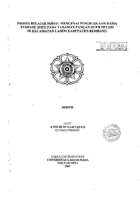 Proses Belajar Sosial Mengenai Pengelolaan Hama Terpadu (Pht) Pada Tanaman Pangan Oleh Petani Di Kecamatan Lasem Kabupaten Rembang Andi Budi Hartanto Fakultas Pertanian UGM Konten Lokal Konten Lokal 48842
