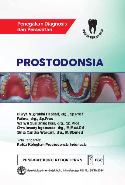 Buku ini disusun mulai dari pengumpulan data pemeriksaan klinis pemeriksaan penunjang dan diagnosis serta perawatan pada kasus prostodonsia Gambar yang disediakan secara khusus melengkapi buku untuk memudahkan pembaca memahami urutan logis isi buku sehingga diharapkan mahasiswa kedokteran gigi mampu melakukan pendekatan kepada pasien secara komprehensif