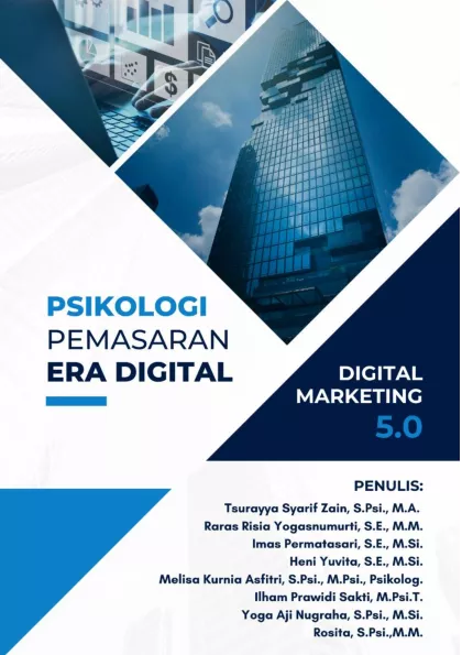 Buku ini merupakan panduan komprehensif yang menggabungkan dua aspek penting dalam dunia pemasaran saat ini strategi pemasaran digital dan psikologi pemasaran Buku ini ditujukan untuk para profesional pemasaran pengusaha serta mahasiswa dan praktisi pemasaran yang ingin memahami bagaimana pemasaran digital dan psikologi dapat saling berkolaborasi untuk mencapai kesuksesan dalam industri dan pendidikan Buku ini dimulai dengan menguraikan konsep dasar pemasaran digital strategi pemasasran psikogi pemasaran dan perkembangannya serta sumber informasi yang berharga bagi siapa pun yang tertarik untuk memahami cara menggabungkan pemasaran digital dengan pemahaman psikologis yang mendalam untuk mencapai kesuksesan dalam dunia industri dan pendidikan Buku ini memberikan panduan praktis yang dapat diimplementasikan dengan baik oleh para pemasar sambil menawarkan wawasan tentang tren dan perkembangan terbaru dalam pemasaran digital