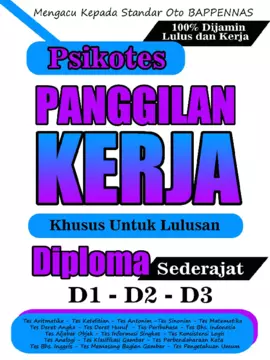 Sinopsis Buku: Buku ini merupakan panduan lengkap dan praktis untuk menghadapi berbagai jenis tes psikotes yang sering digunakan dalam proses seleksi kerja, khususnya untuk lulusan diploma. Buku ini dirancang untuk membantu calon pekerja mempersiapkan diri secara efektif dan meningkatkan peluang lolos dalam tes psikotes yang sering diujikan oleh HRD perusahaan. Buku ini mencakup berbagai jenis soal tes psikotes yang umum muncul, seperti Tes Aritmatika, Tes Ketelitian, Tes Analogi, Tes Antonim, Tes Informasi Singkat, Tes Sinonim, Tes Klasifikasi Gambar, Tes Bahasa Indonesia, Tes Deret Angka, Tes Bahasa Inggris, Tes Kosistensi Logis, Tes Matematika, Tes Perbendaharaan Kata, Tes Objek Gambar, Tes Deret Huruf, Tes Memasang Bagian Gambar, dan Tes Pengetahuan Umum. Setiap bagian disertai dengan kunci jawaban untuk memudahkan pemahaman dan evaluasi. Dengan mempelajari materi dan soal-soal dalam buku ini, calon pekerja dapat memperkuat kemampuan berpikir logis, konsentrasi, dan kecermatan, serta meningkatkan kesiapan menghadapi tes psikotes secara menyeluruh. Buku ini menjadi referensi yang sangat bermanfaat bagi para lulusan diploma yang sedang mencari pekerjaan dan ingin memperoleh peluang kerja yang lebih baik.