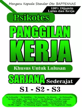 Sinopsis Buku: Buku ini merupakan panduan lengkap dan praktis bagi para lulusan sarjana yang ingin mempersiapkan diri menghadapi Tes Psikotes dalam proses seleksi kerja. Buku ini dirancang untuk membantu Anda memahami dan mempersiapkan diri secara efektif terhadap berbagai jenis soal yang sering muncul dalam ujian psikotes, yang digunakan oleh HRD sebagai alat seleksi karyawan. Buku ini terdiri dari 18 bagian utama, masing-masing berisi jenis-jenis soal psikotes yang umum ditemukan dalam proses rekrutmen kerja. Jenis-jenis soal yang disediakan mencakup Tes Aritmatika, Tes Ketelitian, Tes Antonim, Tes Deret Angka, Tes Sinonim, Tes Matematika, Tes Pribahasa, Tes Bahasa Indonesia, Tes Aljabar Objek, Tes Informasi Singkat, Tes Bahasa Inggris, Tes Seret Huruf, Tes Kosistensi Logis, Tes Perbendaharaan Kata, Tes Memasang Bagian Gambar, Tes Analogi, Tes Klasifikasi Gambar, dan Tes Pengetahuan. Setiap bagian dilengkapi dengan contoh soal dan kunci jawaban yang mendukung pemahaman dan penguasaan materi. Dengan mempelajari buku ini, Anda akan lebih siap dan percaya diri dalam menghadapi tes psikotes, terutama untuk bidang-bidang yang memerlukan tingkat ketelitian tinggi, seperti akuntansi, administrasi data, dan lainnya. Buku ini menjadi sumber referensi yang sangat bermanfaat untuk para pencari kerja yang ingin meningkatkan peluang lolos dalam proses seleksi kerja. Dengan memahami dan mempraktikkan soal-soal yang disajikan, Anda akan lebih mudah menghadapi tantangan dalam ujian psikotes dan meningkatkan kualitas diri dalam memasuki dunia kerja.