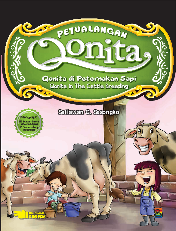 Qonita dan Brian melihat Pak Dedros sedang memotong tanaman jagung muda Ternyata Pak Dedros mengumpulkan tanaman itu untuk makanan sapi Pak Dedros mengajak Qonita dan Brian ke peternakan sapi Di sana Pak Dedros langsung memberi makan sapi sapinya Ia memandu Qonita dan Brian berkeliling melihat sapi sapinya Qonita dan Brian ingin mencoba memerah susu sapi Pak Dedros mengajarkan cara memerah susu sapi yang benar Kira kira Brian dan Qonita bisa tidak ya memerah susu sapi Buku Seri Petualangan Qonita selain bercerita tentang serunya petualangan Qonita di berbagai situasi dan tempat juga dilengkapi informasi informasi penting tentang hewanhewan yang diceritakan pada setiap bukunya Segera miliki koleksinya Dijamin jiwa petualang kalian akan tumbuh wawasan dan pengetahuan pun bertambah