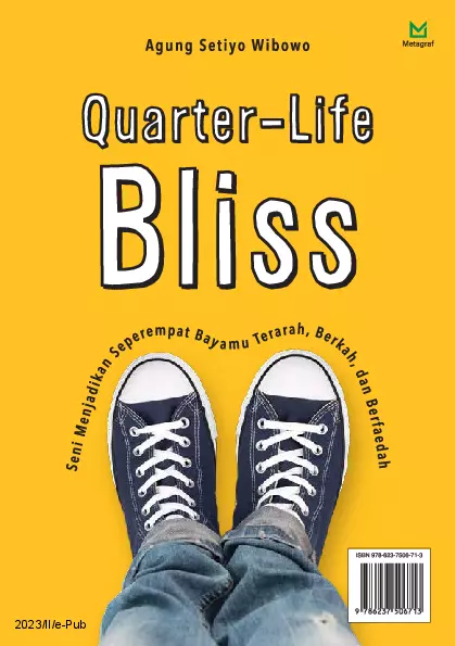 Sinopsis Buku: Buku *Quarter-Life Bliss: Seni Menjadikan Seperempat Bayamu Terarah, Berkah, dan Berfaedah* adalah panduan praktis bagi para pemuda usia 20 hingga awal 30-an yang sedang menghadapi masa transisi hidup yang penuh tantangan. Buku ini menggambarkan perjalanan pengarang yang melewati krisis identitas dan mencari jati diri selama sabbatical satu tahun, serta hasil riset yang dilakukan untuk memahami fenomena *quarter life crisis* yang sering dialami oleh generasi muda, terutama di lingkungan Timur. Buku ini menjelaskan bagaimana menghadapi ketidakpastian masa depan, kegalauan, dan tekanan lingkungan yang membuat seseorang merasa terjebak dalam kebingungan. Di dalamnya, dibahas cara menyikapi dan mengatasi kondisi *quarter life crisis* agar tidak terpuruk, kehilangan motivasi, atau bahkan mengalami krisis makna hidup. Buku ini juga menyajikan panduan untuk menemukan solusi menghadapi berbagai tekanan dan tuntutan hidup yang tinggi, serta membangun visi karier dan misi hidup yang jelas. Bagi para fresh graduate, Gen Y, dan siapa saja yang sedang mengalami masa transisi, buku ini menjadi rujukan untuk menjadi pribadi yang lebih siap menghadapi tantangan, lebih baik, dan lebih berarti dalam hidup. Buku ini bukan hanya tentang mengatasi krisis, tetapi juga tentang menemukan kebahagiaan dan makna dalam masa transisi.