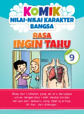 Menanamkan nilai nilai karakter bangsa yang luhur dan positif kepada anak menjadi sangat penting untuk dilakukan sedari dini Satu dari sekian banyak cara yang tepat dan termudah untuk dipahami oleh anak adalah melalui cerita bergambar yang dikemas dalam bentuk komik bilingual Salah satu dari 18 nilai nilai karakter bangsa adalah Rasa Ingin Tahu yakni sikap dan tindakan yang selalu berupaya untuk mengetahui lebih mendalam dan meluas dari sesuatu yang dipelajarinya dilihat dan didengar Buku ini menjadi sangat layak untuk dikenalkan dan menjadi bacaan anak anak sehingga kelak dewasa akan tumbuh dengan karakter karakter positif yang akan turut serta dalam melestarikan kepribadian yang luhur