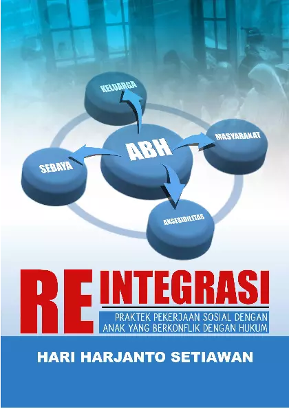 Reintegrasi terhadap anak yang berkonflik dengan hukum bukan saja memulangkan anak kepada orang tuanya reunifikasi saja Lebih dari itu bahwa reintegrasi adalah kembalinya anak berfungsi secara sosial dan tidak lagi mengulangi perbuatan kriminalnya Buku ini didasarkan pada praktek yang berbasis pada bukti evident base practice dari sebuah hasil penelitian tindakan action research selama dua siklus Ada tiga tahapan dalan satu siklus penelitian yang waktunya satu tahun yaitu tahap melihat kondisi look tahap pelaksanaan program act dan memikirkan kembali program yang telah dijalankan think Buku ini menawarkan pemikiran bahwa menolak pemenjaraan anak sebagai sebuah solusi Permasalahan anak berkonflik dengan hukum bukan hanya ada pada sistim peradilan saja tetapi permasalahan sebenarnya ada pada lingkungan sosialnya Banyak hal yang mempengaruhi kehidupan anak dalam masa perkembangannya antara lain teman sebaya keluarga lingkungan tetangga dan aksesibilitas melakukan tindak kriminal Sehingga perlu dikembangkan program pelayanan yang mengembalikan anak pada fungsi sosialnya reintegrasi yaitu teman sebaya keluarga dan masyarakat Mengembalikan anak kepada pertemanan dengan sebaya keluarga dan masyarakat tidak mudah dilakukan karena ternyata lingkungan anak juga menjadi penyebab permasalahan Sehingga lingkungan seperti ini juga harus diberikan intervensi agar proses reintegrasi dapat berjalan dengan baik Buku ini merupakan karya yang sangat penting untuk dibaca terkait isu perlindungan anak Kebanyakan masyarakat mempersepsi jahat kepada anak yang melakukan tindak kriminal melalui buku ini penulis malah mengajak untuk melindunginya karena penulis menganggap bahwa pelaku tindak kriminal pada dasarnya adalah korban dari orang dewasa yang membentuknya Ini adalah tantangan yang berat karena pemikiran ini bertentangan dengan persepsi masyarakat pada umumnya Penulis juga menentang bentuk pemenjaraan bagi anak yang cenderung merupakan pembalasan Buku ini mengharapkan restoratif justice harus ditegakkan