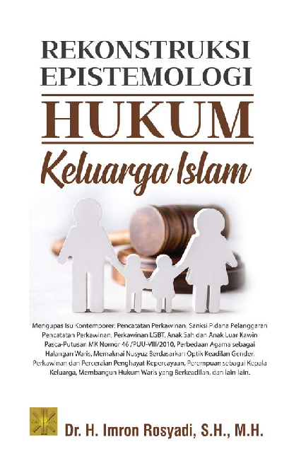 Sinopsis Buku: Buku ini menyajikan rekonstruksi epistemologi terhadap isu-isu kontemporer dalam bidang hukum keluarga Islam, dengan fokus pada pembaruan pemikiran dan penyesuaian terhadap perkembangan zaman. Buku ini membahas berbagai topik penting, seperti syarat sah perkawinan, sanksi pidana atas pelanggaran hak cipta, perkawinan antara LGBTQ+, perkawinan beda agama, peran perempuan sebagai kepala keluarga, usia minimal kawin dan dilema dispensasi kawin, status anak sah dan anak luar kawin pasca-putusan MK Nomor 46/PUU-VIII/2010, rekonstruksi perbedaan agama sebagai halangan menerima warisan, memaknai nusyuz dari perspektif keadilan gender, serta perkawinan dan perceraian dalam konteks penghayat kepercayaan. Selain itu, buku ini juga mengupas peran hukum waris dalam membangun keadilan, serta keterkaitan antara hukum keluarga Islam dengan prinsip-prinsip maqashid al-syar’i (tujuan hukum). Buku ini berupaya menjembatani antara pemikiran tradisional dan kontemporer dalam rangka merespons dinamika sosial, politik, dan hukum di era modern. Buku ini sangat relevan bagi mahasiswa, praktisi pengadilan, dan para pembaca yang tertarik pada perkembangan hukum keluarga Islam, serta menyajikan wawasan kritis dan objektif untuk menunjang pemahaman yang lebih mendalam terhadap isu-isu hukum keluarga di konteks Indonesia yang plural dan berkembang.