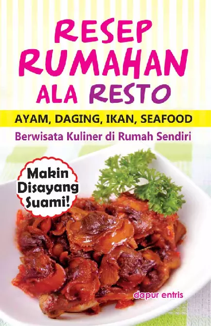 Sinopsis Buku: Buku ini merupakan panduan masak rumahan yang dirancang untuk memudahkan penggemar kuliner dalam menikmati masakan yang biasanya dijumpai di restoran, namun kini bisa disajikan di rumah sendiri. Buku ini menawarkan berbagai resep masakan yang beragam, mulai dari masakan berbahan ayam, daging, ikan, hingga seafood, dengan cara penyajian yang praktis dan mudah diikuti. Dalam buku ini, pembaca akan menemukan berbagai resep masakan seperti Pepes Ayam, Semur Daging, Sup Ayam, Sup Ikan, Tumis Ayam Tahu, hingga Udang Goreng Gurih. Setiap resep disertai dengan penjelasan bahan dan langkah-langkah yang jelas, sehingga memudahkan pembaca dalam proses memasak. Selain itu, buku ini juga menyediakan informasi mengenai bahan-bahan yang sering digunakan dalam masakan Indonesia, seperti bawang putih, cabai merah keriting, cabai rawit, dan bawang bombay, beserta karakteristik dan cara penggunaannya yang tepat. Buku ini sangat cocok bagi pemula maupun pecinta masakan yang ingin mengembangkan keterampilan memasak di rumah. Dengan konsep \"Berwisata Kuliner di Rumah Sendiri\", buku ini menawarkan pengalaman memasak yang menyenangkan dan menggugah selera, tanpa harus keluar dari rumah. Dengan berbagai resep yang kaya dan bahan-bahan yang mudah ditemukan, buku ini menjadi referensi lengkap bagi siapa pun yang ingin mencoba memasak masakan ala resto di rumah.