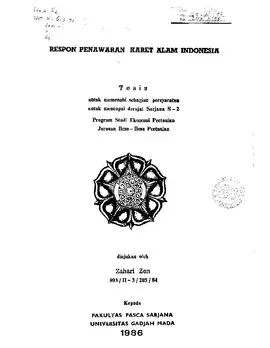 Respon Penawaran Karet Alam Indonesia Zahari Zen Fakultas Pertanian UGM Konten Lokal Konten Lokal 31079