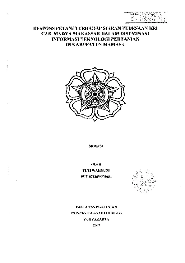 RESPONS PETANI TERHADAP SIARAN PLDESAAN RRI CAB. MADYA MAKASSAR DALAM DISEMINASI INFORMASI TEKNOLOGI PERTANIAN DI KABUPATEN MAMASA Tuti Wahyuni Fakultas Pertanian UGM Konten Lokal Konten Lokal 48817