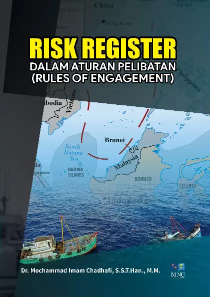 Sinopsis Buku: Buku ini membahas peran TNI Angkatan Laut (TNI AL) dalam menjaga kedaulatan, pertahanan, dan keamanan maritim Indonesia, khususnya di wilayah Laut Natuna Utara. Dalam konteks ini, buku memperkenalkan konsep *Risk Register Dalam Aturan Pelibatan (Rules of Engagement)* sebagai alat strategis untuk menghadapi ancaman dan gangguan yang mengancam keamanan maritim. Buku ini tidak hanya membahas ancaman dari luar, seperti klaim Nine-dash line oleh Tiongkok dan ketidakjelasan batas Zona Ekonomi Eksklusif (ZEE) antara Indonesia dan Vietnam, tetapi juga mengupas tugas TNI AL dalam menjaga keutuhan wilayah dan sumber daya alam Indonesia. Penulis, Dr. Mochammad Imam Chadhafi, S.S.T.Han., M.M., mengembangkan inovasi dengan merekonstruksi teori penyusunan *Rules of Engagement (ROE)* dan menambahkan komponen *Risk Register* sebagai bagian integral dalam mendukung tugas pertahanan maritim. Buku ini menjadi referensi penting bagi akademisi, praktisi, dan pengamat dalam bidang hukum, politik, pertahanan, dan keamanan maritim. Buku ini juga memberikan wawasan mendalam tentang tantangan yang dihadapi Indonesia dalam pembangunan kemaritiman, sekaligus menekankan pentingnya laut dalam pembangunan nasional yang berkelanjutan.