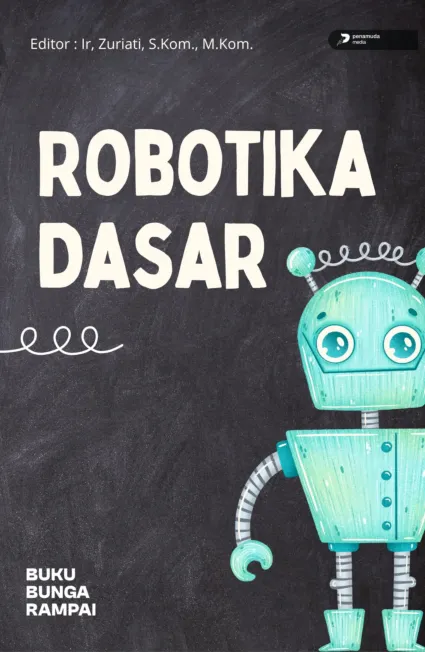 Buku Robotika Dasar menyajikan pemahaman menyeluruh mengenai konsep prinsip dan penerapan robotika sebagai bidang interdisipliner yang memadukan mekanika elektronika sistem kendali pemrograman dan kecerdasan buatan Pembahasan dimulai dari sejarah dan perkembangan robotika dilanjutkan dengan komponen utama seperti sensor aktuator dan mikrokontroler serta prinsip kerja mekatronika Buku ini juga mengulas jenis jenis robot sistem penggerak dan kendali serta dasar dasar pemrograman robot Selain aspek teknis disajikan aplikasi robotika dalam industri kehidupan sehari hari dan bidang medis serta integrasinya dengan kecerdasan buatan Di bagian akhir dibahas tantangan etika keamanan dan arah perkembangan robotika di masa depan Buku ini cocok sebagai referensi pembelajaran bagi pelajar mahasiswa dan praktisi pemula