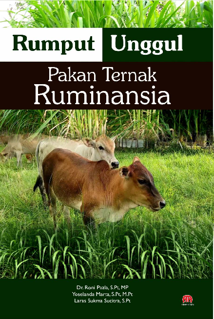 Hijauan makanan ternak memiliki peranan yang sangat penting dan menentukan dalam upaya meningkatkan produksi ternak ruminansia seperti sapi kerbau kambing dan domba Hijauan merupakan bahan pakan pokok bagi ternak yang fungsinya tidak dapat digantikan oleh konsentrat Hijauan memiliki kadar serat yang tinggi Kandungan serat kasar yang dibutuhkan oleh ternak ruminansia paling rendah adalah 13 14 dari bahan kering ransum Ternak ruminansia akan mengalami gangguan pencernaan jika kandungan serat kasar yang terdapat di dalam ransum terlalu rendah Hijauan berfungsi untuk menjaga alat pencernaan agar berfungsi dengan baik membuat rasa kenyang bulk dan mendorong keluarnya sisa pencernaan Rumput merupakan salah satu jenis hijauan makanan ternak Rumput unggul adalah rumput yang didatangkan dari luar yang memiliki kelebihan dibandingkan rumput lokal terutama dari segi produksi dan kualitasnya Faktor faktor yang harus diperhatikan dalam pemilihan jenis jenis rumput yang akan digunakan untuk sebagai pakan ternak ruminansia adalah produktifitas yang tinggi palatabilitasnya baik bagi ternak nilai gizi yang cukup dan mampu beradaptasi dengan iklim dan kondisi lahan setempat Faktor faktor tersebut harus diperhatikan agar memperoleh hijauan pakan yang baik dari segi kualitas maupun kuantitas Apabila ternak ruminansia mendapatkan hijauan dalam jumlah yang cukup serta kualitas gizi yang baik maka penggunaan konsentrat sebagai pakan tambahan dapat dikurangi Buku ini mengurai informasi seputar rumput unggul pakan ternak ruminansia diantaranya adalah rumput gajah Pennisetum purpureum rumput raja Pennisetum purpuphoides rumput benggala Pannicum maximum rumput setaria Setaria sphacelata rumput bede Brachiaria decumbens dan jenis rumput lainnya