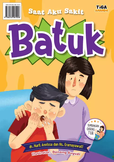 Sinopsis Buku: Buku ini berisi informasi yang informatif dan menarik tentang penyakit batuk, khususnya pada anak-anak. Buku ini menyajikan hal-hal yang tidak boleh dilakukan anak saat sakit batuk, seperti mengonsumsi makanan yang dapat memperparah batuk, seperti cokelat, makanan manis, berminyak, dan berlebihan garam. Selain itu, disebutkan pula pentingnya menghindari bermain di dekat sumber asap dan debu, karena dapat memperburuk kondisi batuk. Buku ini juga memberikan cara mencegah penyakit batuk agar tidak menyerang anak, seperti memberikan asupan cairan yang cukup, terutama air hangat, serta memberikan campuran kecap dan jeruk nipis untuk anak yang sedang batuk. Selain itu, disarankan untuk mengatur suhu kamar agar tidak terlalu dingin dan kering, serta melembapkan saluran pernapasan anak dengan cara menempatkan anak di kamar mandi yang berisi uap hangat. Buku ini juga mengingatkan orang tua untuk mengajarkan anak untuk menutup mulut dengan tisu atau lengan saat batuk, serta mencuci tangan secara rutin untuk mencegah penyebaran penyakit. Jika batuk tidak kunjung sembuh dalam satu minggu, segera bawa anak ke dokter, karena bisa jadi gejala penyakit berbahaya seperti tuberkulosis dan batuk rejan. Selain itu, buku ini juga mengisahkan cerita Adit, seorang anak yang mengalami batuk dan berusaha sembuh dengan mengikuti anjuran Bunda. Adit belajar untuk menghindari makanan penyebab batuk dan berusaha menjaga lingkungan sehat agar tidak terkena batuk lagi. Cerita ini disampaikan dengan gaya yang santai dan mudah dipahami, sehingga menjadi sarana edukasi yang menarik dan bermanfaat bagi anak-anak dan orang tua.