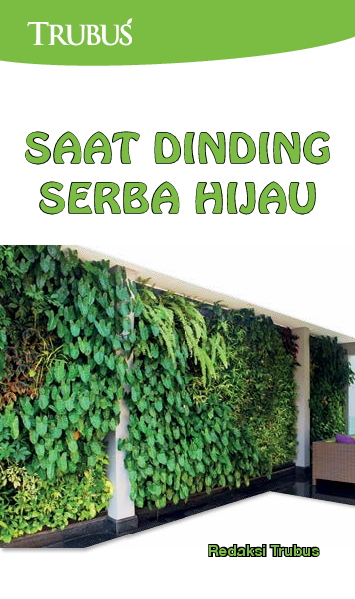 Warna warna hijau segar hadir dari ratusan daun Philodendron burle marx walisongo Schefflera sp pakis kelabang Nephrolepis exaltata alangalang Imperata cylindrica dan lili paris Chlorophytum sp membuat asri dinding rumah di sebuah perumahan elite di Jakarta Seluruh tanaman bagai tumbuh alami menutupi dinding Kehadiran Alternanthera sp berwarna merah semakin membuat taman menarik Masyrakat urban kian menggemari taman dinding lantaran memberikan kesan segar Pembaca bisa menyimak artikel seputar taman dinding nan menarik yang menghijaukan suasana dalam buku ini