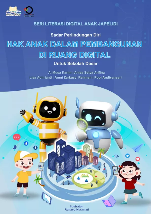 Halo teman teman apakah teman teman tahu apa itu handphone Apakah teman teman juga sudah tahu kalau dengan handphone kalian bisa membantu Indonesia untuk jadi lebih baik lagi Mari kita ikuti kisah Lili dan Didi dengan dua robot pintar Ronan dan Rolita Dalam buku ini teman teman diajak untuk mengetahui bagaimana caranya menjadi anak anak yang pandai menggunakan handphone sekaligus tahu cara menjadikan handphone sebagai alat yang bermanfaat untuk Indonesia Mari kita baca kisah seru Lili dan Didi bersama Rolan dan Rolita Selamat membaca