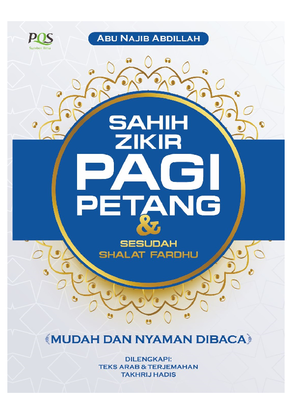 Buku saku Shahih Zikir Pagi Petang dan Sesudah Shalat Fardu ini mudah dan juga nyaman dibaca dan juga dilengkap dengan teks arab dan terjemahan takhrij hadits