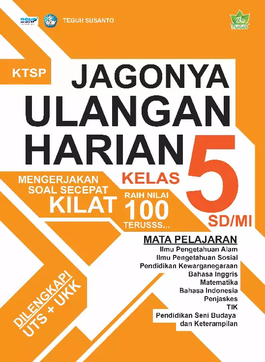 Sinopsis Buku: Buku *Jagonya Ulangan Harian* ini merupakan panduan belajar yang komprehensif dan praktis untuk siswa kelas 5 SD/MI. Buku ini dirancang untuk membantu siswa mempersiapkan ulangan harian, ulangan tengah semester (UTS), dan ulangan kenaikan kelas (UKK) dengan lebih efektif. Buku ini mencakup berbagai paket soal yang terstruktur dan terdistribusi pada setiap pokok bahasan dari seluruh mata pelajaran yang sesuai dengan KTSP. Soal-soal yang disajikan dalam buku ini beragam dan mencakup berbagai tingkat kesulitan, sehingga mampu menguji pemahaman siswa secara menyeluruh. Selain itu, buku ini juga dilengkapi dengan kunci jawaban yang lengkap, sehingga siswa dapat memeriksa dan memahami kesalahan yang mungkin terjadi dalam pengerjaan soal. Buku ini sangat berguna sebagai sarana belajar mandiri yang efektif, karena membantu siswa menguasai materi pelajaran secara lebih baik dan memperkuat pemahaman mereka sebelum menghadapi ulangan. Dengan adanya latihan soal yang beragam dan terstruktur, buku ini menjadi pendamping belajar yang sangat berharga bagi siswa kelas 5 SD/MI.