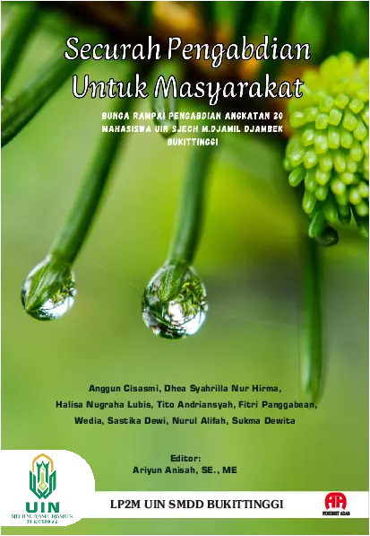 Buku ini merupakan hasil karya dari mahasiswa dan mahasiswi KKN UIN Sjech M Djamil Djambek Bukittinggi dari Korong Pincuran Sonsang Hilir Buku ini berisikan penjelasan dari berbagai macam informasi yang didapatkan di lingkungan masyarakat serta dilengkapi dengan gambar dan unsur media lain sehingga dapat membantu pembaca mem ahami konsep