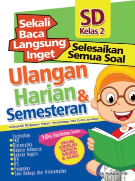 Sinopsis Buku: Buku ini merupakan panduan belajar yang komprehensif untuk siswa SD kelas 2, terutama dalam mempersiapkan Ulangan Harian, Ulangan Tengah Semester (UTS), Ujian Nasional (UN), dan juga soal olimpiade. Buku ini dirancang untuk membantu siswa memahami materi pelajaran secara mendalam, serta memperkuat pemahaman melalui latihan soal yang beragam dan relevan dengan kurikulum. Isi buku mencakup berbagai bab yang disusun secara terstruktur, seperti *Sikap Cinta Lingkungan*, *Hidup Bergotong Royong*, dan lainnya. Dalam bab *Sikap Cinta Lingkungan*, siswa akan belajar tentang pentingnya menjaga kebersihan dan keseimbangan lingkungan, termasuk peran tumbuhan dan hewan dalam menjaga kelestarian alam. Siswa juga akan memahami bahwa lingkungan adalah tanggung jawab bersama, dan bahwa menjaga lingkungan harus dilakukan sejak kecil. Di bab *Hidup Bergotong Royong*, siswa akan belajar tentang pentingnya kerja sama dan gotong royong dalam kehidupan sehari-hari, baik di sekolah maupun di masyarakat. Buku ini juga mencakup penjelasan tentang manfaat tumbuhan dan hewan bagi manusia, seperti tumbuhan sebagai penghasil oksigen dan bahan makanan, serta hewan sebagai bahan makanan, sarana transportasi, dan hewan kesayangan. Selain itu, buku ini dilengkapi dengan soal-soal yang beragam dan relevan, sehingga memudahkan siswa untuk berlatih dan menguasai materi pelajaran. Buku ini juga dilengkapi dengan informasi penerbit, penulis, dan redaksi, serta keterangan hak cipta untuk melindungi karya tersebut. Dengan struktur yang jelas dan materi yang relevan, buku ini menjadi sumber belajar yang bermanfaat bagi siswa SD kelas 2 dalam mempersiapkan berbagai jenis ujian dan ulangan.