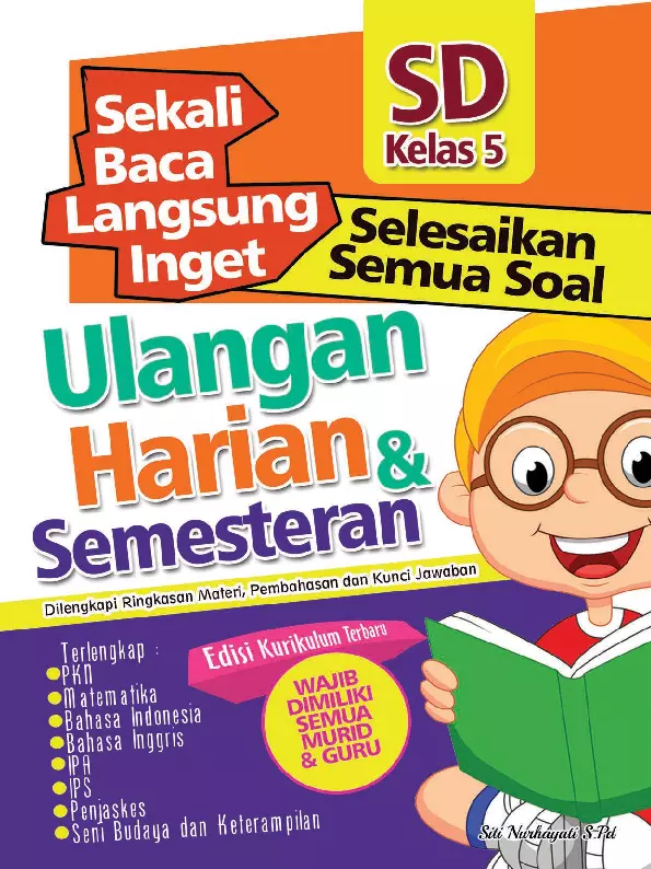 Sinopsis Buku: Buku ini merupakan kumpulan soal-soal lengkap untuk siswa kelas 5 SD, yang mencakup berbagai pelajaran seperti Ilmu Pengetahuan Sosial (IPS), Bahasa Inggris, Pendidikan Kesehatan Jasmani, dan Keterampilan dan Kesenian. Soal-soal yang disajikan meliputi Ulangan Harian (UH), Ulangan Tengah Semester (UTS), serta Ujian Kenaikan Kelas, yang merupakan ujian penting untuk menentukan kenaikan ke kelas 6. Selain itu, buku ini juga dilengkapi dengan soal-soal Olimpiade yang dirancang untuk melatih kemampuan siswa dalam mengerjakan soal-soal yang lebih kompleks dan menantang. Setiap bab dilengkapi dengan ringkasan materi yang singkat namun jelas, sehingga memudahkan siswa dalam memahami konsep-konsep penting. Buku ini juga dilengkapi dengan kunci jawaban untuk setiap soal, baik pada semester 1 maupun semester 2, sehingga siswa dapat memeriksa tingkat pemahaman dan kesiapan mereka sebelum menghadapi ujian nyata. Dengan disusun secara terstruktur dan sistematis, buku ini diharapkan dapat menjadi referensi yang berguna bagi siswa dalam mempersiapkan diri secara optimal untuk berbagai jenis ujian, baik ulangan harian maupun ujian kenaikan kelas. Buku ini juga merupakan sarana untuk meningkatkan kemampuan akademik dan mencapai nilai terbaik.