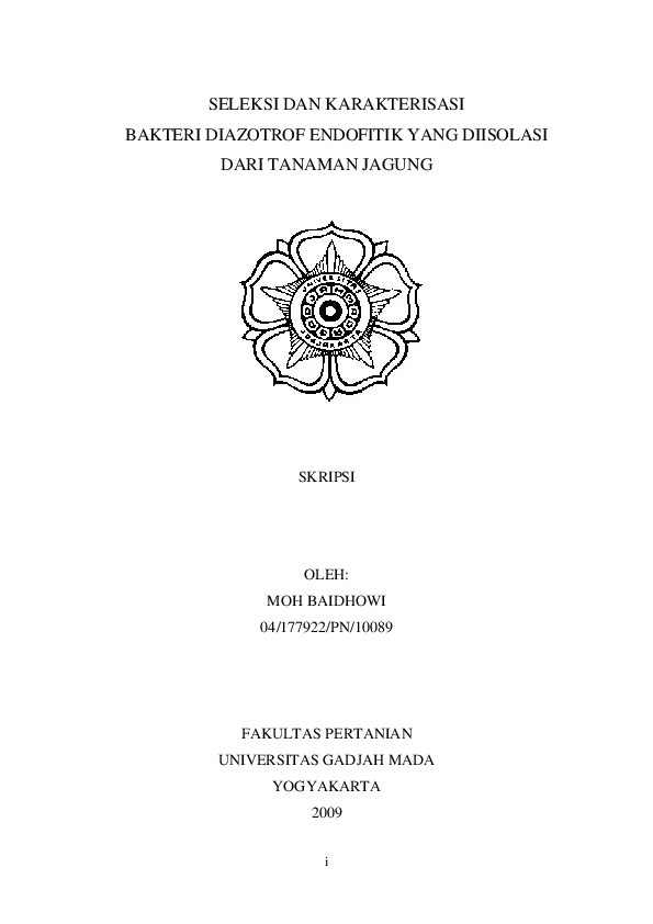 Seleksi Dan Karakterisasi Bakteri Diazotrof Endofitik Yang Diisolasi Dari Tanaman Jagung Moh Baidhowi Fakultas Pertanian UGM Konten Lokal Konten Lokal 31257