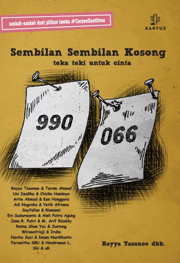 Teman teman semua kini tiba saatnya saya sebutkan sebuah nomor untuk undian terakhir dengan hadiah berupa satu unit tablet PC Sudah siap ujar si MC Dan nomor undian yang beruntung adalah sembilan sembilan kosong Nomormu berapa Ren Ini bener nggak ya Tadinya sih aku ngelihatnya kosong enam enam Tapi kalau diputer gini jadi sembilan sembilan kosong Ya udah maju aja Ren Namun ada seorang mahasiswa yang juga naik ke panggung Lho jadi ada dua orang yang mendapatkan nomor undian sembilan sembilan kosong Romantisme itu bisa saja berawal dari sebuah nomor undian mengalir jadi cerita cinta yang unik lalu berakhir dengan manis Sejumlah cerita pendek yang ditulis secara berpasangan menjadi harmonisasi sangat solid Mari nikmati setiap chemistry nya di sini