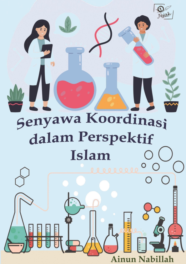 Sinopsis Buku: Buku *Senyawa Koordinasi dalam Perspektif Islam* adalah karya yang menggabungkan ilmu kimia dengan ajaran Islam, khususnya dalam memahami konsep senyawa koordinasi dan logam transisi dari perspektif keagamaan. Buku ini ditulis oleh Ainun Nabillah dan diterbitkan oleh CV Jejak pada tahun 2022. Buku ini menggunakan metode 4-STMD (Four-Step Teaching Material Development) untuk menyajikan materi secara sistematis dan interaktif, sehingga memudahkan pembaca dalam memahami konsep-konsep kimia yang kompleks. Materi utama yang dibahas mencakup pengenalan logam transisi, termasuk penjelasan tentang logam transisi dengan nomor atom 26, yaitu besi (Fe), yang memiliki konfigurasi elektron [Ar] 3d? 4s². Besi merupakan salah satu logam transisi yang paling banyak ditemukan dalam kerak bumi, sekitar 5% dari komposisi bumi, dan memiliki peran penting dalam kehidupan manusia, khususnya dalam pembuatan senjata dan bahan-bahan yang memperkuat kehidupan sehari-hari. Selain itu, buku ini juga menjelaskan senyawa koordinasi, termasuk struktur, sifat, dan ikatan pada senyawa tersebut. Penulis memadukan konsep ilmiah dengan ajaran Islam, seperti penjelasan tentang besi dalam Al-Qur’an, khususnya pada Surah Al-Hadid ayat 25, yang menjelaskan bahwa besi adalah salah satu dari berbagai bukti nyata yang dikirimkan Allah SWT kepada para rasul-Nya. Buku ini tidak hanya memberikan pengetahuan ilmiah yang mendalam, tetapi juga mengajak pembaca untuk bersyukur atas ciptaan Allah SWT dan memahami keberkahan yang terkandung dalam berbagai materi alam, termasuk logam transisi dan senyawa koordinasi. Dengan pendekatan yang holistik, buku ini menjadi sumber pengetahuan yang bermanfaat bagi pembaca yang ingin menggabungkan ilmu pengetahuan dengan nilai-nilai keagamaan.