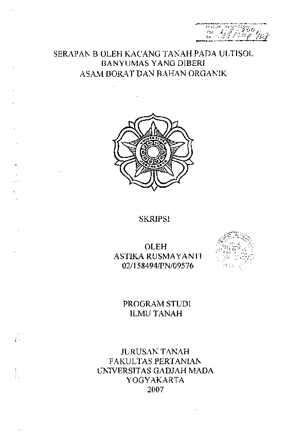 Serapan B Oleh Kacang Tanah Pada Ultisol Banyumas Yang Diberi Asam Borat Dan Bahan Organik Astika Rusmayanti Fakultas Pertanian UGM Konten Lokal Konten Lokal 49195