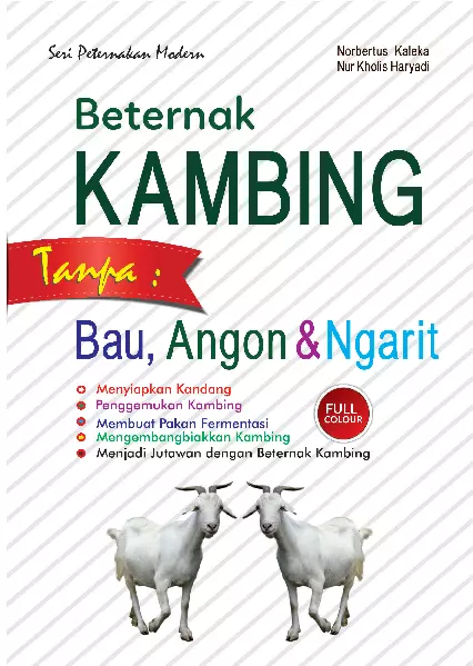 Kambing merupakan hewan ternak yang sangat akrab dengan kehidupan masyarakat Indonesia Ruminansia kecil ini mudah dipelihara cepat berkembangbiak serta bisa menjadi tabungan yang mudah dicairkan pada saat butuh uang secara cepat Karena itulah banyak masyarakat yang memeliharanya meskipun hanya beberapa ekor di pekarangan Namun terkadang pemeliharaan kambing terutama di pekarangan menimbulkan masalah lingkungan yaitu bau kotorannya Hal itu sering kali menjadi penghalang bagi seseorang untuk memelihara kambing Masalah itu sebenarnya bisa diatasi dengan memberikan pakan fermentasi Dengan pakan ini bau kotoran kambing akan tereduksi Selain itu dengan pakan ini peternak bisa menyediakan pakan untuk jangka waktu yang lama Itu membuat peternak tidak perlu angon atau menggembala dan ngarit atau mencari pakan setiap hari Penggunaan pakan ini juga akan memberikan beberapa keuntungan lainnya Selain menampilkan cara beternak dan penggemukan kambing buku ini akan mengupas penggunaan pakan fermentasi dalam pemeliharaan kambing Dengan mengikuti buku ini peternak bisa memelihara kambing tanpa bau angon dan ngarit Selamat membaca dan selamat beternak kambing