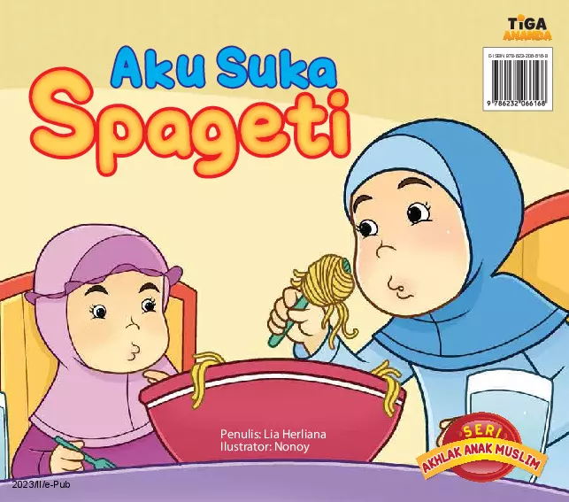 Sinopsis: Naura dan Zahra, dua teman sekolah yang berbeda dalam cara makan, menghabiskan waktu bersama di rumah Bunda. Mereka mencuci tangan sebelum makan, lalu duduk mengelilingi meja makan sambil berdoa bersama. Naura sangat menyukai spageti dan makan dengan lahap, sedangkan Zahra lebih tenang dan memakan sedikit demi sedikit. Meski berbeda, keduanya tetap menyadari bahwa makan adalah momen yang penting dan seharusnya dilakukan dengan kesadaran. Naura, yang tergolong ceria, pernah mengambil spageti tambahan tanpa izin, tetapi Zahra mengingatkannya untuk tidak terlalu banyak makan. Kisah ini menggambarkan kebiasaan makan yang sehat, kesadaran diri, serta pentingnya berbagi dan saling mengingatkan dalam kehidupan sehari-hari. Buku ini mengajarkan nilai-nilai kebersihan, kesadaran diri, dan kebaikan dalam pergaulan, terutama untuk anak-anak Muslim.