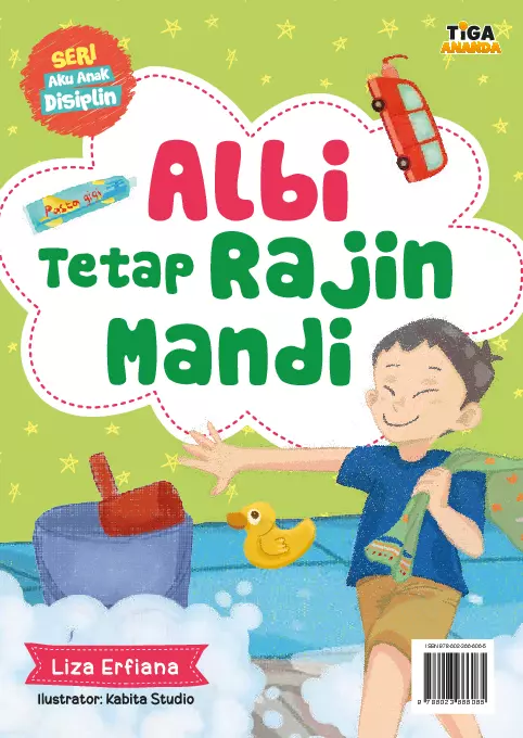 Sinopsis: Buku ini menceritakan kisah Albi, seorang anak yang memiliki sikap disiplin dalam kebiasaan mandi. Meski awalnya kesulitan, Albi akhirnya terbiasa mandi tepat waktu, baik pagi maupun sore. Ia selalu mandi sebelum menonton film kartun favoritnya, tidak menunda-nunda, dan menjaga kebersihan tubuh. Dengan disiplin mandi, Albi merasa tubuhnya segar, tidak tergesa-gesa, dan lebih percaya diri. Buku ini juga menjelaskan manfaat dari kebiasaan mandi yang teratur, serta memberikan tips agar anak-anak bisa terbiasa mandi dengan disiplin. Dengan cerita yang menarik dan pesan yang bermanfaat, buku ini menjadi panduan bagi anak-anak untuk membentuk kebiasaan baik sejak dini.