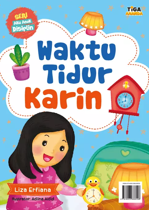 Sinopsis Buku: Karin adalah seorang anak yang sangat disiplin dalam menjaga waktu tidur dan bangun pagi. Ia selalu berusaha untuk tidur tepat waktu dan bangun pagi agar tubuhnya tetap segar dan siap menghadapi hari baru. Dengan mematuhi rutinitas seperti mematikan lampu kamar, menyalakan lampu tidur, serta berdoa sebelum dan sesudah tidur, Karin berhasil menjaga kesehatan dan fokusnya di sekolah. Ia juga memasang alarm untuk memastikan dirinya bangun tepat waktu, sehingga tidak kesiangan dan bisa beraktifitas dengan optimal. Disiplin tidur dan bangun pagi membuat Karin selalu bersemangat dan siap belajar, bahkan ketika menghadapi tugas yang berat. Meskipun suatu hari ia kesulitan menyelesaikan PR karena terlalu lama mengerjakan tugas prakarya, Karin tetap berusaha untuk menyelesaikannya dengan baik. Buku ini memberikan pelajaran tentang pentingnya disiplin waktu, khususnya dalam rutinitas tidur dan bangun pagi, serta bagaimana disiplin dapat membawa dampak positif dalam kehidupan sehari-hari.