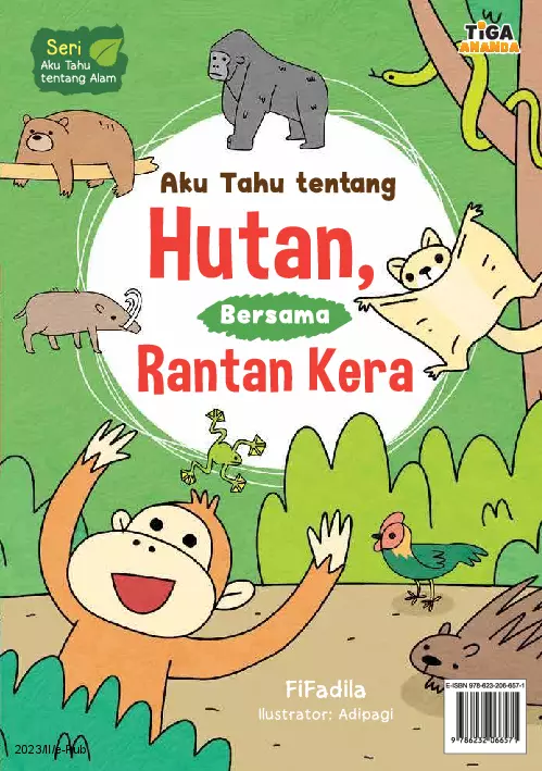 Sinopsis: Buku ini mengajak pembaca menjelajah berbagai jenis hutan, yaitu hutan hujan tropis, hutan meranggas, dan hutan pinus, melalui perjalanan seru bersama Rantan Kera, seekor kera yang ceria dan penasaran. Dalam perjalanan ini, pembaca akan mengenal keanekaragaman hayati yang ada di setiap jenis hutan, mulai dari tumbuhan yang tumbuh, hewan yang hidup, serta kondisi lingkungan yang mendukung kehidupan mereka. Buku ini juga menyampaikan pentingnya menjaga kelestarian hutan demi kelangsungan hidup makhluk-makhluk yang tinggal di dalamnya. Dengan bahasa yang santai dan penuh kejutan, buku ini menjadi pengantar yang menarik untuk anak-anak yang ingin belajar lebih dalam tentang alam dan lingkungan sekitar.