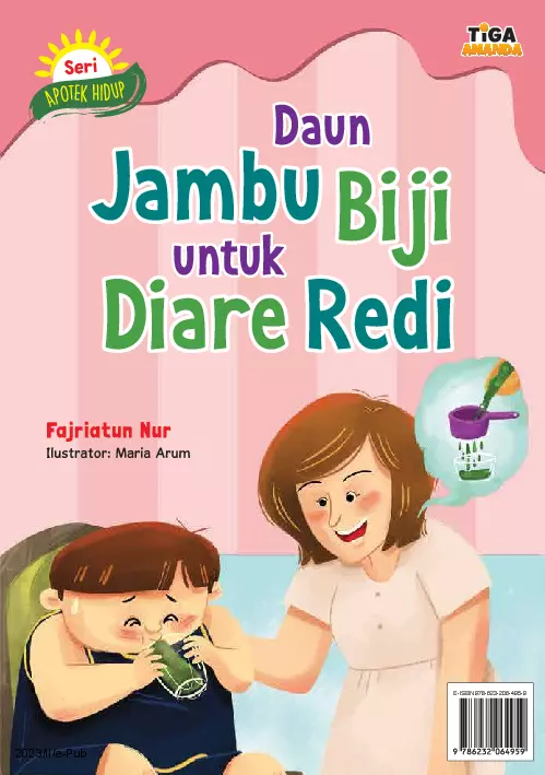 Sinopsis: Buku ini menceritakan kisah Redi, seorang anak yang sering mengalami diare akibat mengonsumsi jajanan sembarangan. Dalam cerita ini, Bunda memberikan solusi alami berupa obat dari daun jambu biji muda yang dapat meredakan diare. Bunda menjelaskan cara membuat obat tersebut dengan langkah-langkah yang mudah diikuti. Selain itu, buku ini juga menyampaikan pentingnya menjaga kebersihan makanan dan menghindari jajanan yang tidak terjamin kebersihannya. Dalam rangka membantu Redi mengatasi masalah diare, Bunda juga mengajarkan kebiasaan sehat dan mengenalkan cara menanam pohon jambu biji sebagai bagian dari kehidupan sehari-hari. Buku ini tidak hanya menarik bagi anak-anak, tetapi juga memberikan informasi penting tentang kesehatan dan kebersihan makanan secara sederhana dan mudah dipahami.