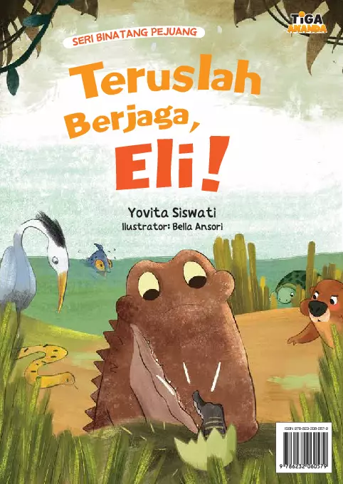 Sinopsis Buku: Dalam buku ini, kita mengikuti kisah Eli, seekor aligator yang berusaha melindungi anak-anaknya dari berbagai ancaman di lingkungan alaminya. Sejak bayi-bayi aligator menetas, Eli tidak pernah berhenti menjaga mereka dengan penuh perhatian dan kehati-hatian. Ia mengusir berbagai pemangsa seperti elang, ular, dan berang-berang, bahkan sampai menghadapi babi hutan dan macan tutul. Tidak hanya itu, Eli juga menghadapi tantangan lingkungan seperti krisis air yang mengancam kehidupan anak-anaknya. Dengan semangat dan kekuatan, Eli membawa anak-anaknya berjalan melewati hutan dan ilalang menuju muara sungai yang airnya melimpah. Meskipun ia terus-menerus diuji, Eli tetap berjaga dan tidak pernah menyerah. Setelah satu tahun berlalu, anak-anaknya tumbuh menjadi besar, kuat, dan mampu berburu sendiri. Dalam kesempatan terakhir, Eli melepas mereka, dengan harapan mereka tidak lupa akan kehadiran dan perlindungan yang telah diberikannya. Buku ini menggambarkan kehidupan alam, keberanian, dan peran induk dalam melindungi anak-anaknya, sekaligus menyampaikan pesan tentang pentingnya kesadaran lingkungan dan perlindungan terhadap keanekaragaman hayati.