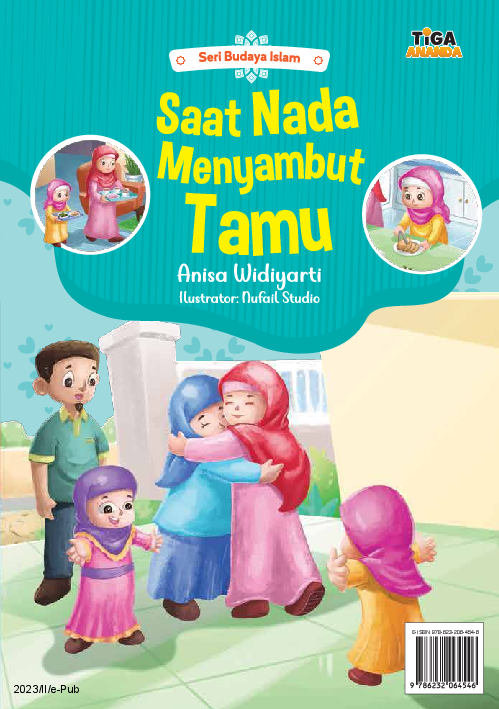 Sinopsis: Buku *Saat Nada Menyambut Tamu* mengisahkan kisah kecil yang penuh makna tentang pentingnya memuliakan tamu, sesuai ajaran agama Islam. Dalam cerita ini, Nada, seorang anak yang penuh rasa hormat, menyambut saudaranya, Dinda, yang datang dari desa. Nada berusaha memperhatikan dan menjaga sikap baik dalam menerima tamu, termasuk dalam menyediakan makanan, berbincang, dan mengantarkan tamu saat ia pulang. Cerita ini juga menggambarkan interaksi keluarga yang harmonis, serta pelajaran tentang kepedulian, kesabaran, dan kejujuran dalam menjalani hubungan sosial. Buku ini mengajarkan nilai-nilai keislaman melalui cerita yang sederhana dan mudah dipahami, khususnya untuk anak-anak.