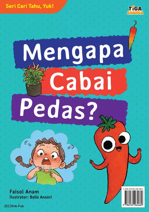 Sinopsis Buku: Buku ini menjelaskan secara menarik dan mendalam tentang cabai, termasuk mengapa cabai terasa pedas, bagaimana kapsaisin bekerja dalam tubuh, serta efek-efek yang terjadi setelah mengonsumsinya. Dalam buku ini, kamu akan menemukan fakta-fakta menarik tentang senyawa kapsantin yang memberi warna merah pada cabai dan bagaimana cabai hijau bisa berubah menjadi merah. Selain itu, buku ini juga membahas kegunaan kapsaisin dalam melindungi cabai dari serangan hewan dan jamur, serta menjelaskan mengapa cabai rawit lebih pedas dibandingkan cabai merah biasa. Buku ini juga memberikan informasi tentang cara mengatasi rasa pedas di lidah dan efek samping yang mungkin terjadi akibat konsumsi cabai berlebihan. Dengan bahasa yang sederhana dan menarik, buku ini menjadi sumber pengetahuan yang informatif dan menyenangkan untuk semua kalangan, terutama anak-anak yang suka makan pedas.