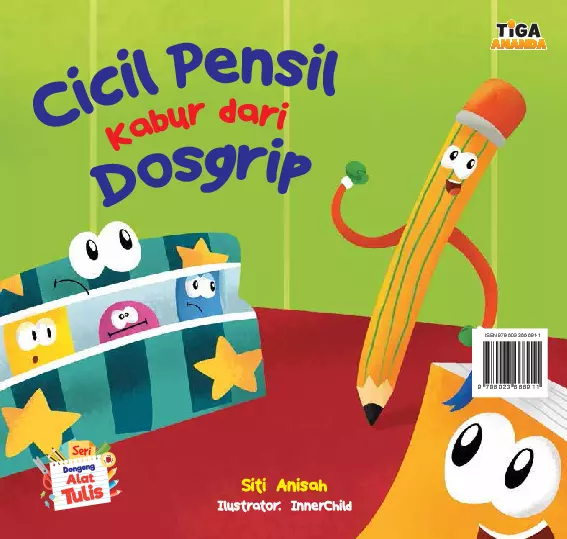 Sinopsis Buku: Cicil Pensil merasa bosan tinggal terus di dalam dosgrip. Ia ingin keluar dan menjelajah dunia di luar. Dengan bantuan teman-teman seperti Dosi Dosgrip, Gogo Gunting, Popi Pulpen, dan alat-alat tulis lainnya, Cicil berhasil kabur dari dosgrip. Namun, dalam petualangannya, Cicil tidak memperhatikan peringatan Popi untuk berhati-hati. Akhirnya, Cicil terjatuh dari meja belajar dan ujungnya patah. Tapi, apakah Cicil masih bisa digunakan untuk menulis lagi? Petualangan Cicil Pensil ini mengajarkan pentingnya kesadaran akan bahaya dan tanggung jawab dalam bermain. Buku ini menggambarkan kehidupan alat-alat tulis dengan cara yang kreatif, penuh imajinasi, dan penuh pesan moral.