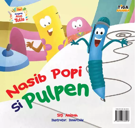 Sinopsis: Dalam cerita ini, Popi, seorang pulpen, mengalami masalah ketika tinta di dalamnya habis. Tanpa tinta, Popi tidak bisa digunakan lagi, dan berisiko dibuang oleh Andi, yang merupakan pengguna utamanya. Situasi ini membuat Popi merasa kesepian dan khawatir. Namun, dengan bantuan teman-temannya—Geri Penggaris dan Cicil Pensil—serta kepedulian Andi, Popi akhirnya diberi isi pulpen baru dan kembali bisa digunakan. Cerita ini menggambarkan pentingnya kerja sama, kepedulian, dan tanggung jawab dalam merawat barang-barang yang digunakan sehari-hari. Selain itu, cerita ini juga mengajarkan pesan penting tentang pentingnya menjaga dan merawat alat tulis agar tetap berguna dan tidak cepat rusak. Dengan bahasa yang sederhana dan cerita yang menarik, buku ini cocok untuk dibaca oleh anak-anak sebagai pengantar untuk belajar nilai-nilai kehidupan sehari-hari.