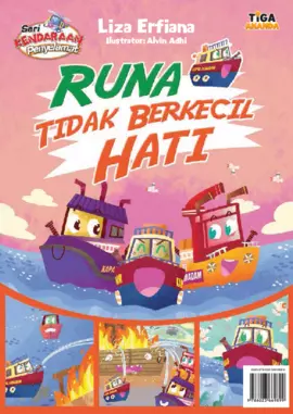 Sinopsis: Buku ini menceritakan kisah petualangan Runa, sebuah kapal pemadam yang berpatroli di sekitar pantai. Suatu hari, Runa menerima informasi bahwa tiga kapal nelayan terbakar di dermaga. Meski berusaha memadamkan api, Runa kesulitan mengendalikan kobaran api yang semakin membesar. Tapi, tidak lama kemudian, dua kapal pemadam lain tiba di tempat kebakaran dan membantu memadamkan api. Meski berhasil menyelamatkan kapal-kapal tersebut, Runa merasa sedih dan bingung karena merasa tidak mampu melakukan tugasnya dengan baik. Dalam kesedihannya, Runa bertanya-tanya kegunaan dirinya sebagai kapal pemadam. Kisah ini menggambarkan semangat kerja sama, tanggung jawab, dan juga proses belajar dari kesalahan. Buku ini juga memberikan penjelasan singkat tentang kapal pemadam, fungsi serta cara kerjanya dalam memadamkan api di wilayah pantai.