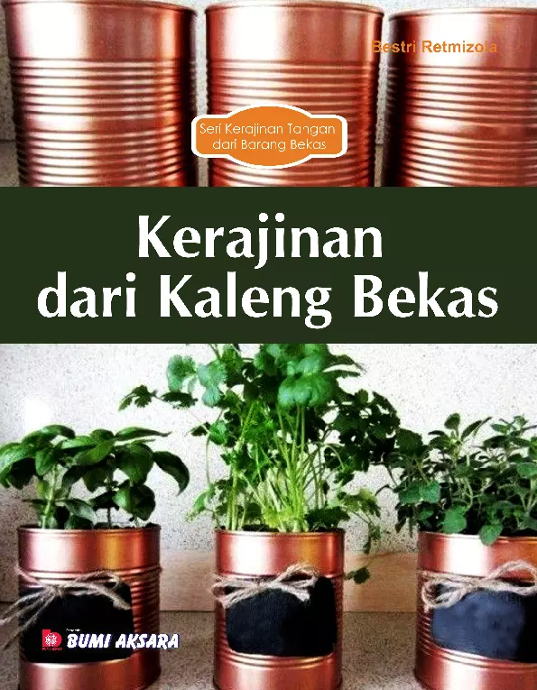 Kerajinan merupakan hal yang berkaitan dengan buatan tangan atau kegiatan yang berkaitan dengan barang yang dihasilkan melalui keterampilan tangan Kerajinan tangan juga dapat disebut suatu kegiatan untuk menciptakan suatu produk yang dominan menggunakan tangan manusia sehingga memiliki fungsi dalam kehidupan Kerajinan dapat dibuat dari berbagai bahan Salah satunya adalah kerajinan dari kaleng bekas Dalam buku ini membahas tentang beberapa panduan dalam membuat kerajinan yang dapat dibuat dari kaleng bekas Tidak hanya sebatas kerajinan biasa kerajinan kerajinan tersebut juga mempunyai nilai estetika dan nilai kegunaan dalam kehidupan sehari hari bahkan nilai ekonomi bila benar benar ditekuni Setiap panduan membuat kerajinan dibuat sedetail mungkin langkah demi langkahnya Melalui buku ini pembaca akan semakin terbuka wawasan dan kreativitasnya dalam memanfaatkan berbagai barang limbah khususnya kaleng bekas yang selama ini dianggap sebagai limbah semata Selain itu buku ini juga dapat menambah referensi mengenai kerajinan dari kaleng bekas Selamat membaca
