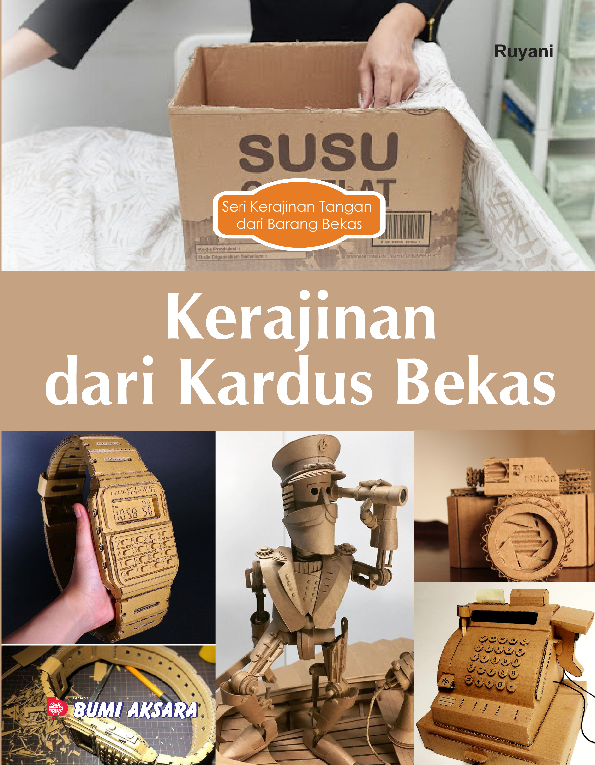 Kerajinan merupakan hal yang berkaitan dengan buatan tangan atau kegiatan yang berkaitan dengan barang yang dihasilkan melalui keterampilan tangan Kerajinan tangan juga dapat disebut suatu kegiatan untuk menciptakan suatu produk yang dominan menggunakan tangan manusia sehingga memiliki fungsi dalam kehidupan Kerajinan dapat dibuat dari berbagai bahan Salah satunya adalah kerajinan dari kardus bekas Dalam buku ini membahas tentang beberapa panduan dalam membuat kerajinan yang dapat dibuat dari kardus bekas Tidak hanya sebatas kerajinan biasa kerajinan kerajinan tersebut juga mempunyai nilai estetika dan nilai kegunaan dalam kehidupan sehari hari bahkan nilai ekonomi bila benar benar ditekuni Setiap panduan membuat kerajinan dibuat sedetail mungkin langkah demi langkahnya Melalui buku ini pembaca akan semakin terbuka wawasan dan kreativitasnya dalam memanfaatkan berbagai barang limbah khususnya kardus bekas yang selama ini dianggap sebagai limbah semata Selain itu buku ini juga dapat menambah referensi mengenai kerajinan dari kardus bekas Selamat membaca