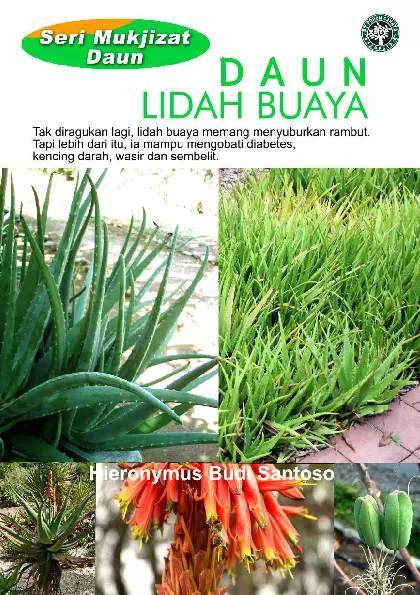 Daun daun yang ada di sekitar kita terbukti bisa menaklukkan penyakit salah satunya daun lidah buaya Tak diragukan lagi lidah buaya memang menyuburkan rambut Tapi lebih dari itu ia mampu mengobati diabetes kencing darah wasir dan sembelit