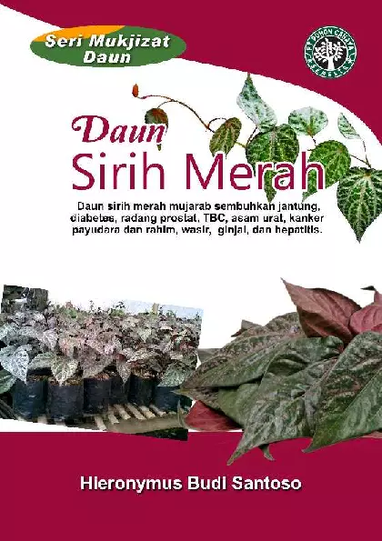 Daun daun yang ada di sekitar kita terbukti bisa menaklukkan penyakit salah satunya daun sirih merah Daun sirih merah mujarab sembuhkan jantung diabetes radang prostat TBC asam urat kanker payudara dan rahim wasir ginjal dan hepatitis Saking hebatnya khasiat daun sirih merah orang mengklaim adanya mukjizat dari daun Buku ini merupakan 39 buku serial 39 yang menyuguhkan mukjizat daun dan diberi nama Seri Mukjizat Daun