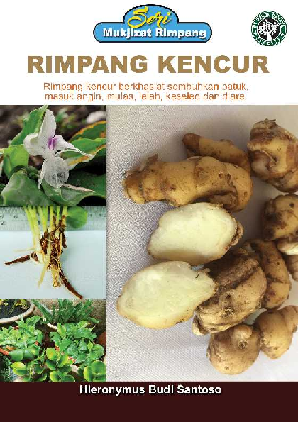 Indonesia memiliki kekayaan alam yang berlimpah Salah satunya adalah tanaman yang tergolong memiliki rimpang Tanaman yang berakar rimpang ini memiliki senyawa aktif flavonoid saponin dan minyak atsiri yang dapat digunakan untuk obat Rimpang kencur berkhasiat sembuhkan batuk masuk angin mulas lelah keseleo dan diare Buku ini merupakan ldquo buku serial rdquo yang menyuguhkan mukjizat rimpang tersebut dan diberi nama Seri Mukjizat Rimpang