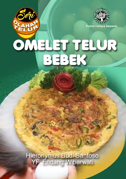 Telur tak hanya mengandung protein tetapi juga vitamin dan mineral Dalam sebutir telur terdapat kandungan protein vitamin D vitamin A vitamin B2 vitamin B12 folat dan iodium Telur bisa dikonsumsi sehari hari dengan tetap memperhatikan cara pengolahannya Misalnya tidak menambahkan lemak pada telur yang dimasak untuk dikonsumsi Tak ada rekomendasi atau ketentuan pasti beberapa banyak telur yang bisa kita konsumsi setiap harinya Anak anak ibu hamil dan orangtua sangat dianjurkan mengonsumsi telur yang sudah benar benar matang Sesungguhnya mengonsumsi telur sudah menjadi bagian tak terpisahkan dari budaya makan kita Ragam masakan telur mudah kita ketemukan dalam keseharian kita Dalam buku praktis ini menyajikan salah satu olahan telur yakni OMELET TELUR BEBEK